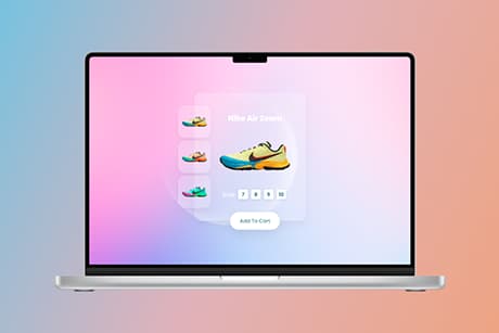 Tarjeta interactiva hecha con css para venta de zapatos, cambia de color dependiendo el zapato que elijan.